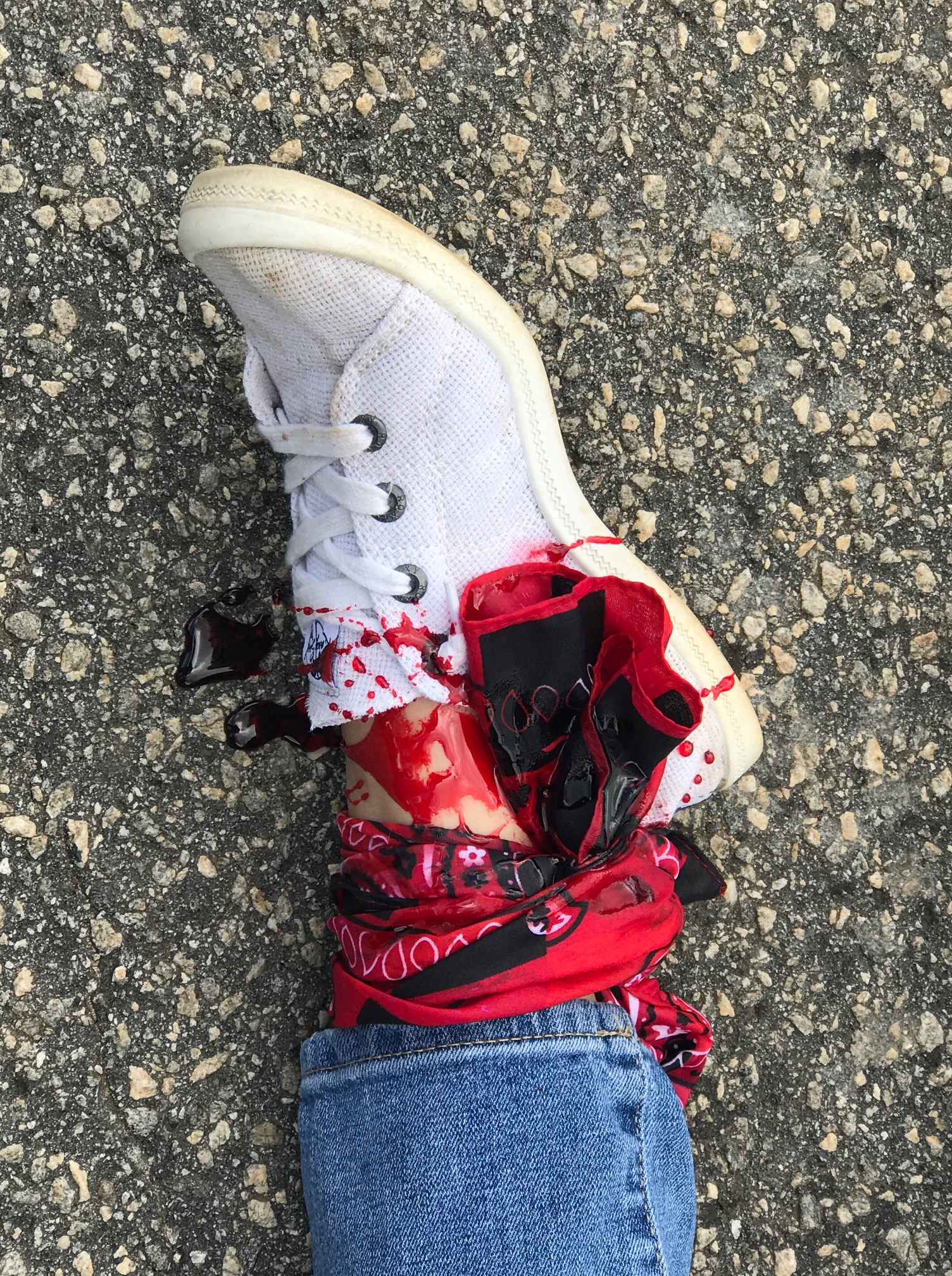 Her eyes moved slowly back down the girl’s body to her left ankle that lay at an odd angle from her body. There was a blood-soaked red bandanna tied around it. She shuddered and drew in a ragged breath. “Ian, tell them to call Detective Barrow!”